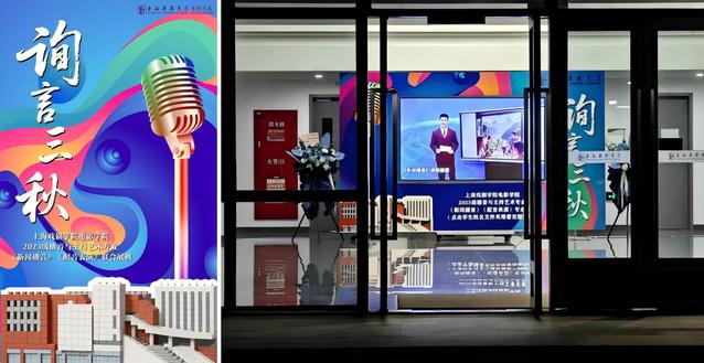 直面受众,检验教学成效。面对新媒体时代内容传播的挑战,课程增设了展映环节,“询言三秋”课程展映利用多媒体电视技术在校内公开展播坐播与站播新闻小片,“询言”之中师生深入探讨,从入门到阶段性成果,“三秋”之期则希望学生们树立长期主义与终生学习的思考,稳步前行。此举旨在推动育人成果走出课堂,直面受众评价反馈,加速学生们向适应时代需求的新型播音主持人才转型。23主持班全体学生以扎实的专业能力和良好的精神风貌交出阶段性答卷。