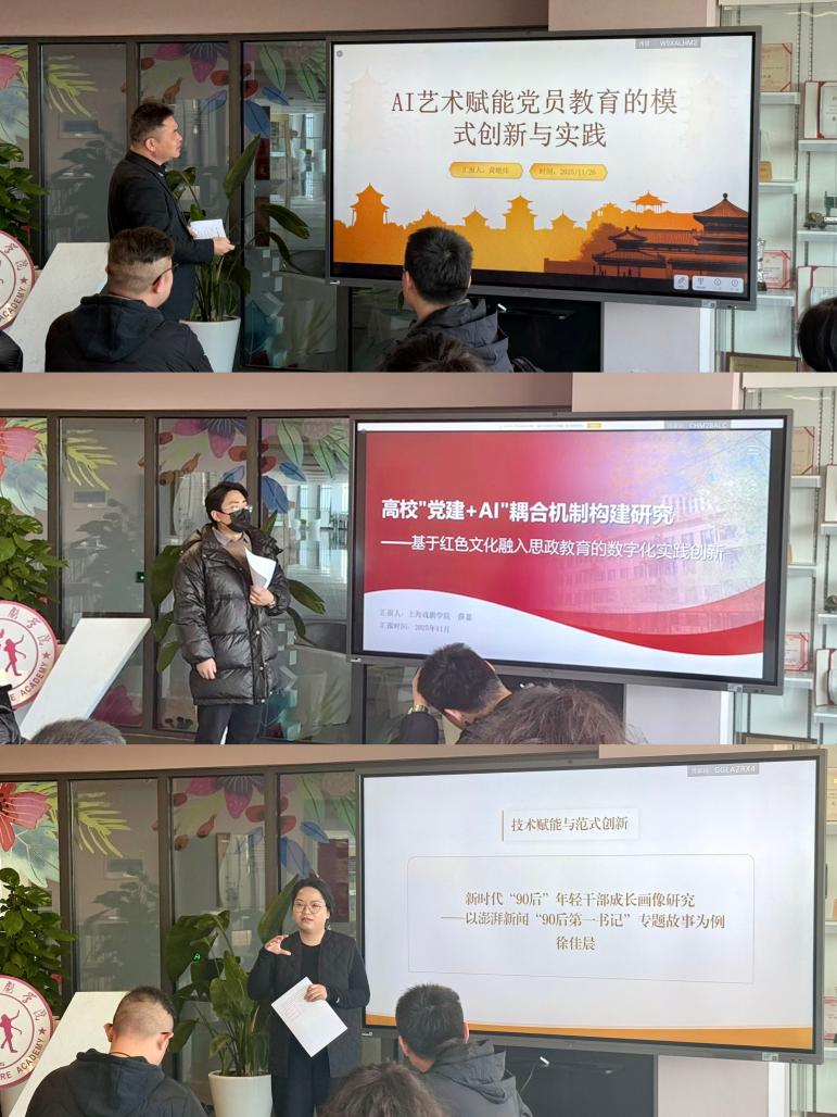 在“机制构建与协同育人”议题中,秦浩以《双育双修 双融双促》为题,聚焦戏曲学院教师党员政治素养与教育教学能力协同提升,直指“评价体系不协同”“教师参与动力不足”等难点;李冉围绕教师党员党性修养与教育教学能力协同提升,提出“党性靠自觉还是靠培养”“业务与党建时间冲突如何调节”等深层疑问;夏逸石则就学生党员发展与教育管理,探讨党员导师的作用发挥及师生支部协同育人机制的构建路径。