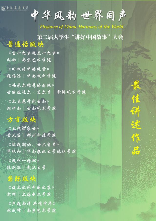 中华风韵·世界同声 第二届大学生“讲好中国故事”大会荣誉名单: