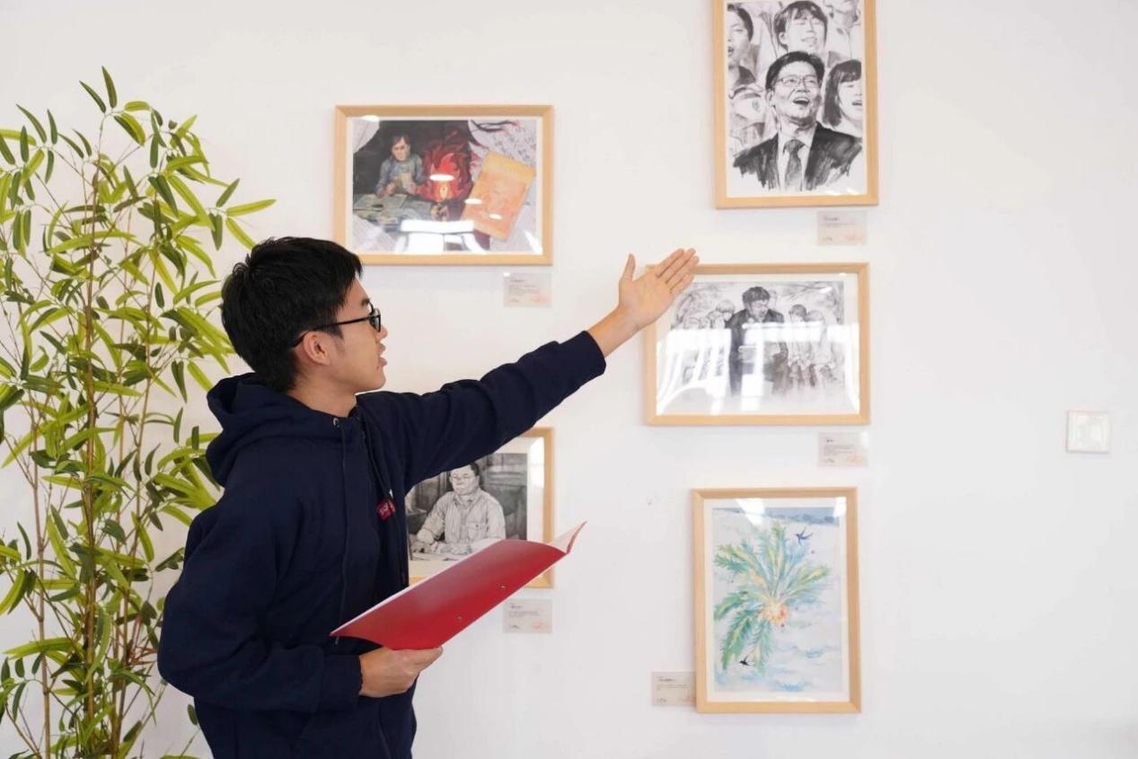 师生原创手绘、AI视频、可互动文创卡片错落有致,特别是VR体验区,让参观者得以沉浸式走进楷模世界,使抽象的精神内涵变得可感可触。