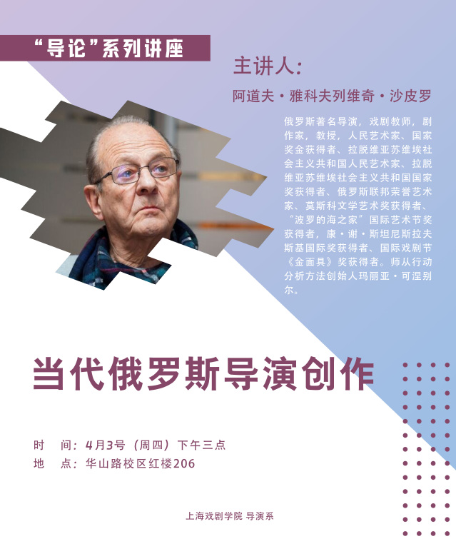 邀请弗拉基米尔・拜切尔、亚历山大・胡赫林等俄罗斯资深导演驻校教学,让学生感受将纯正俄式排练方法。