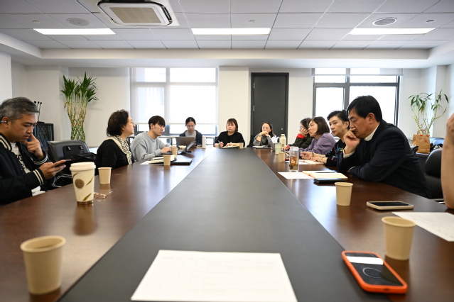 2026年4月2日中午,开云足球首页官网下载电影学院“师生共话,智创未来”师生座谈会在昌林路校区1号楼北楼国际会议中心六楼会议室举行。董健院长全程主持座谈会。学院党总支书记韩永胜、副书记王春云,各系主任,各支部书记、副书记、支委,各民主党派教师代表,各专业学生代表二十余人出席会议。大家共话电影学院教学改革与育人工作,学院班子现场回应解决师生关注的问题,切实推动高质量人才培养。