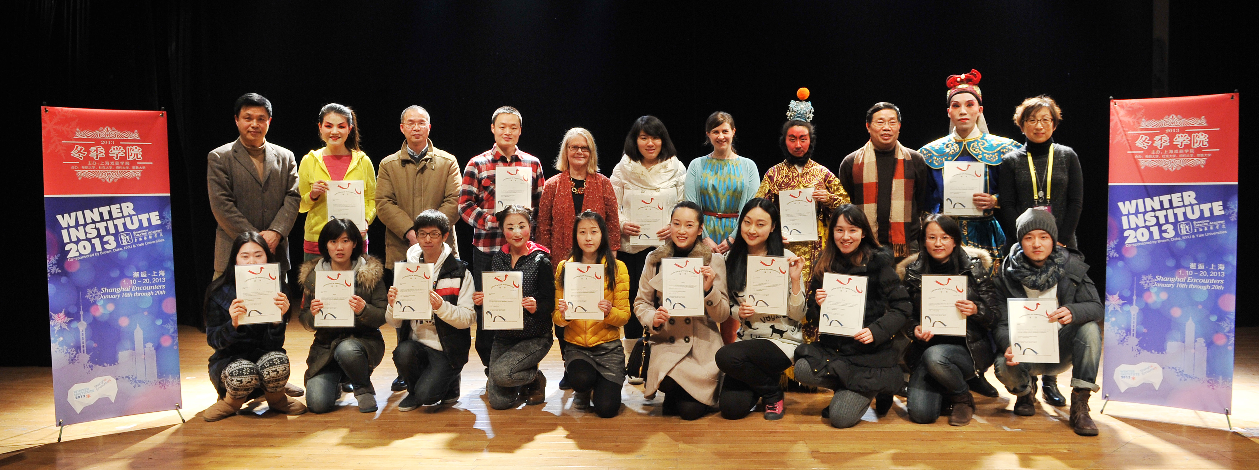 Compared with Winter Program last year, it’s larger in scale this year. Of approximately 100 official students from prestigious universities home and abroad registering after a tough selection, there were students not only from five hosting universities, but also from Harvard University, Columbia University, University of Leeds in UK, Korea National University of Arts, as well as Fudan University, East China Normal University, Zhejiang Normal University, Xiamen University and The National Academy of Theatre Arts, etc. Students put premium on this hard-won opportunity to experience courses from American top-notched universities firsthand, share ideas and creativity from famous scholars, artists and practitioners like friends, and jointly research on the latest developments in this field. Within the past two weeks, except for theoretic courses and academic training, the most prominent feature of Winter Program is creative courses, for instance, China national theatre arts, post-modern arts of music, environmental theatres, etc incorporated into the rural areas, communities, typical China southern villages and City image museums in China. This gave an apt expression to the philosophy of Winter Program, especially the pursuit of exchange and interconnection between the eastern and western cultures. In Winter Program, “Teach and Learn” was more of inner appraises and hope than civilities.