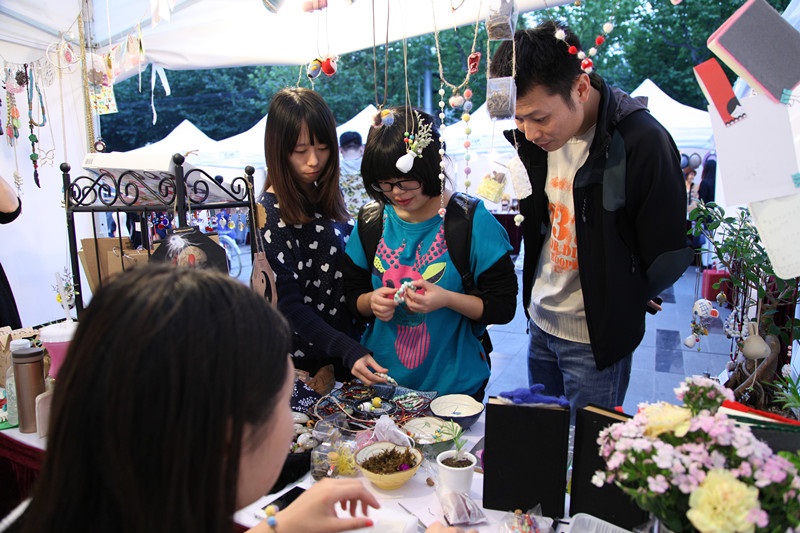 Creative Market is located on the Theatre Square of STA, separated into individual white shelter which together consists of a circle of Creative Display Zone. It draws not only a lot of foreign visitors and artists, but also some overseas students. Most of the art works on display are originally created by students who made each of the works with great feeling towards life and creative inspirations.