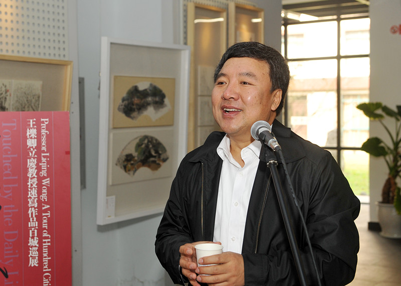 Touched by the Daily Life, a Tour of Hundred Cities----the exhibition of the sketch by Professor Liqing Wong was held in Duanjun Theatre in STA from November 6 to 12. The exhibition was initiated by Shanghai Theatre Academy, China Stage Art Institute, Artists Association in Jiangsu Province, Nanjing University of Aeronautics and Astronautics, Susquehanna International Group of Companies, and the Stage Art Department of STA undertakes the responsibility of organization. President of STA, Professor Han Sheng, the President of Artists Association in Jiangsu Province and famous painter Song Yulin attended the opening ceremony, which was hosted by Wang Lvwei, dean of the Stage Art Department of STA and director of the performance center.