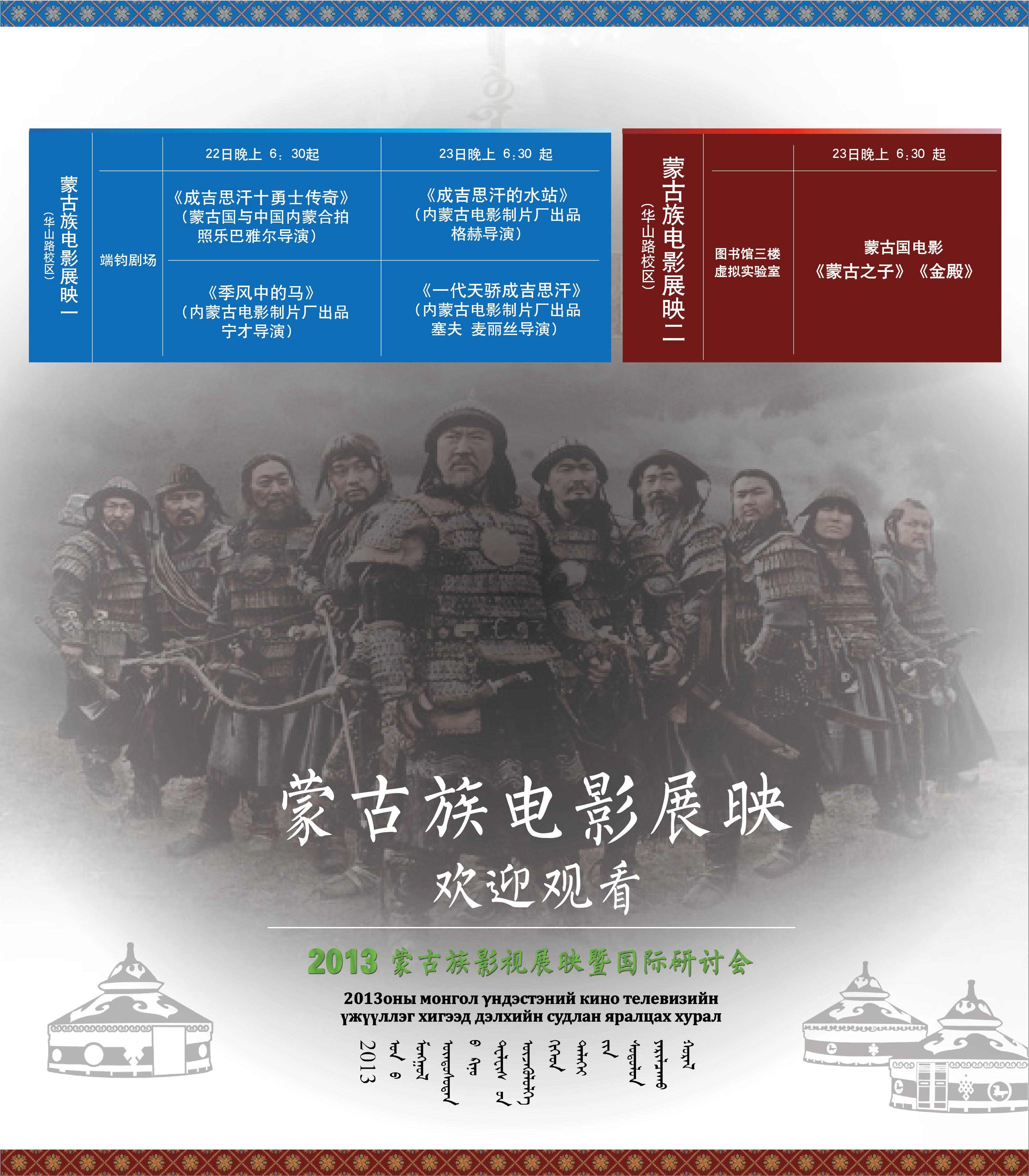 During the seminar, 6 Inner Mongolian and Mongolian films will be put on the big screen in Duanjun Theatre and the Virtual Lab: A Brilliant Man, Genghis Khan, nominated by Oscar as the best foreign film, Season of the Horse, a prize winner from the alumina of STA and famous director Ning Cai, Genghis Khan Water Station, a film full with Mongolian folk features. New co-production Genghis: The Legend of the Ten produced by the Inner Mongolia and the Republic of Mongolia. The first feature film of the Republic of Mongolia, the Son of the Mongolia, is full of the value of history. Golden Hall reflected the passion in life of Mongolian people.