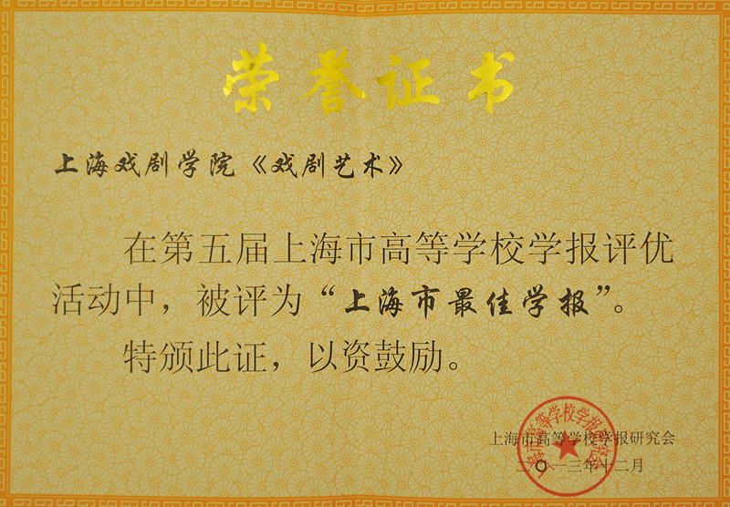 Theatre Arts, the journal published by STA, has recently been selected as one of best university journals during the 5th appraisal of university journals in Shanghai.