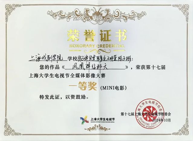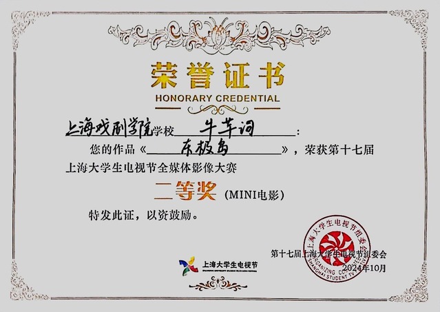 In the "17th Shanghai University Student TV Festival All-Media Image Competition," student Sun Qian from the College of Film won the highest award—the Lilac Grand Prize. In the Mini Film Track, student He Xinyuan won the first prize, while Lin Zifeng, Chen Zibin and others also won the first prize. Niu Qinci won the second prize, and Chen Jie and others, along with Yi Sheng, won the third prize.