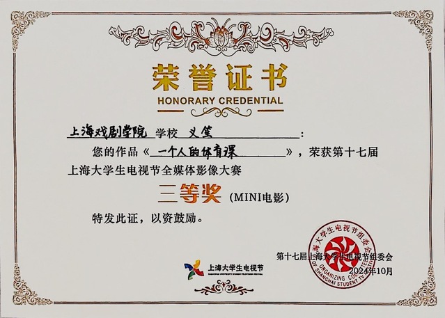 On 20 October 2024, the "17th Shanghai University Student TV Festival" concluded perfectly at the Shanghai Zero Bay Cultural and Art Centre. Students from the College of Film of the Shanghai Theatre Academy performed outstandingly in various competitions, achieving remarkable results. Many students and their guiding teachers from the Film Production Department, Film Directing Department, and Broadcasting and Hosting Arts Department went onto the stage to receive their awards.