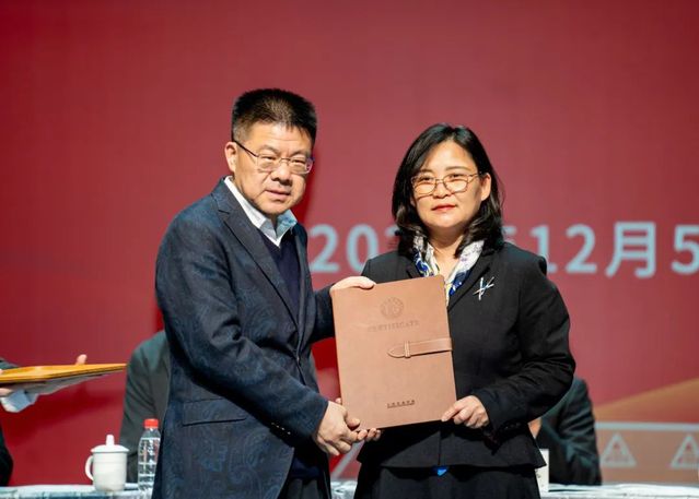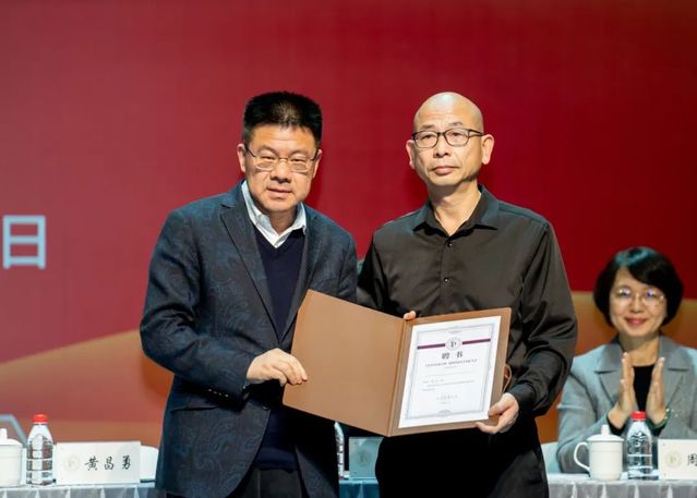 Long Jiang, Dean of the School of Business Administration at the Shanghai University of International Business and Economics, and Dong Xue jing, Secretary of the Party Branch of the School of Arts and Sciences at the Shanghai Dianji University, accepted the appointment letters as evaluation experts issued by the Shanghai Theatre Academy.