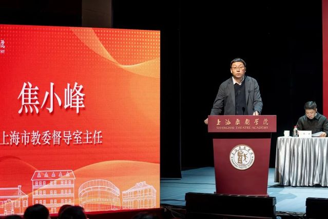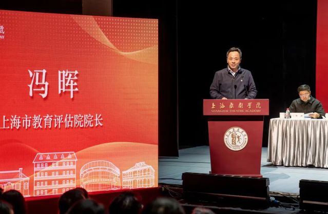 Feng Xiumeng, Director of the Higher Education Office and Director of the Research Office at the Shanghai Education Evaluation Institute, leaders of the Shanghai Theatre Academy, members of the middle management team, and representatives of faculty and students from various colleges and departments attended the meeting.