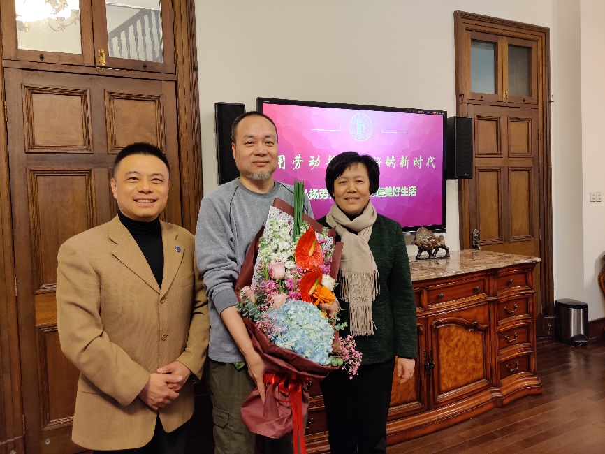 2019年12月20日下午,上海戏剧学院党委副书记胡敏,党委副书记、副院长、工会主席张伟令代表全校教职工慰问了我校全国及上海市的劳模(享受劳模待遇)和五一劳动奖章获得者,向他们献上鲜花。上海市劳模孙祖平老师、全国文化系统先进工作者范和生老师、全国五一劳动奖章获得者王立军老师、上海市劳模陆军老师、上海市劳模杨新华老师、上海市五一劳动奖章获得者裴晶老师、接受了慰问。张伟令院长本人也是全国五一劳动奖章获得者,使这次活动更有意义。