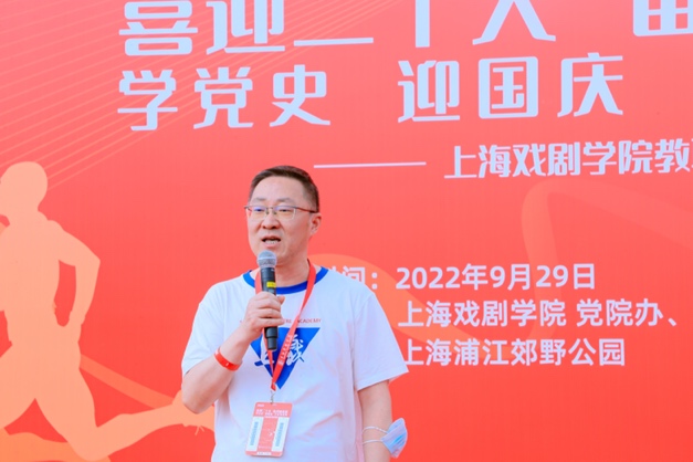 校党委书记谢巍热情讲话,让大家走起来,上戏奔起来!并宣布本次教职工健步走活动开始。