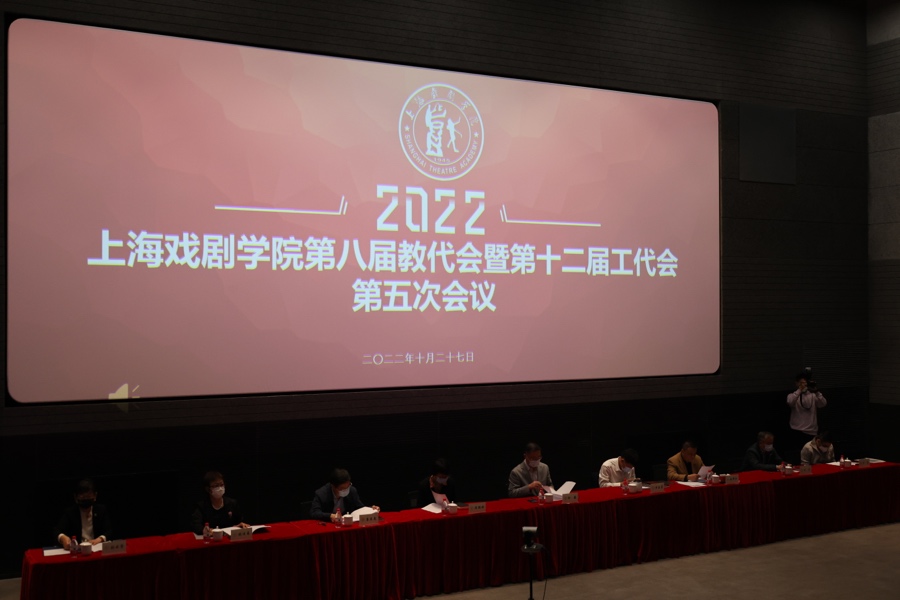 20221027,上海戏剧学院第八届教代会暨第十二届工代会第五次会议在昌林路小区放映厅召开,108名教代会正式代表及50余名列席代表参加会议。