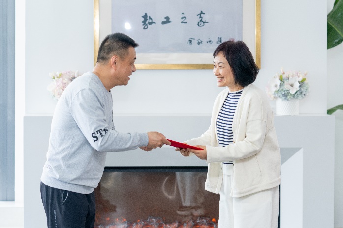 学校党委副书记、副院长、工会主席张伟令发表了讲话,并为侯晓芳老师颁发聘书。教师工作部副部长徐莹老师和工会常务副主席张云蕾老师共同揭牌并为侯老师送上鲜花。