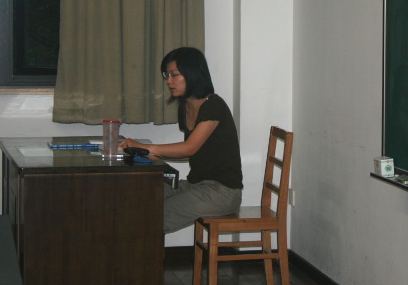 图为英语教师卫莉正在给学生上课