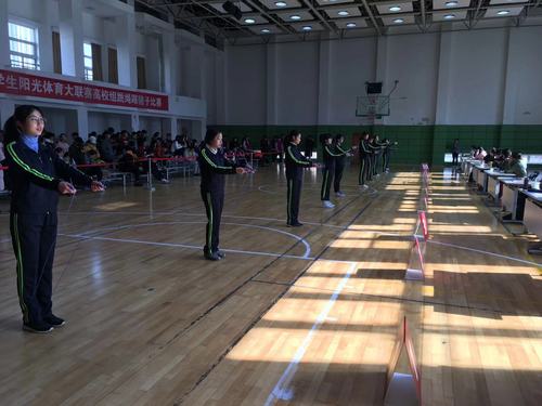 十二月七日上午九时许,上戏学子们在体育老师的带领下到达了上海交通大学医学院体育馆参加阳光体育大联赛跳踢比赛。天朗气清,惠风和畅,大家身着统一的运动服装,眼中满是紧张与期待。签到,上楼,来到比赛场地,已经有不少其他学校的队伍到达,他们正跃跃欲试,或在做准备活动或是拿着计数短绳练习。在经过一番短暂的设备调试后比赛正式开始。“三,二,一,开始”随着电子语音的一声令下,同学们应声开始跳绳,大家或是双脚交替亦或并脚跳绳,以最合适自己的状态跳动着。观众们的目光齐齐集中在他们身上,有的不禁举起手机拍下精彩的瞬间。两分钟很快就到了,大家也都用尽了自己所有力气,显得气喘吁吁。跳绳比赛不仅是“更快更高更强”的体育竞技精神的体现,也锻炼了同学们的毅力,让同学们在紧张刺激的环境下爆发出身体的潜能,体味生命的精彩。
