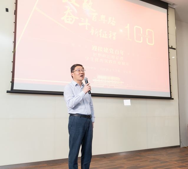 为了迎接中国共产党建党一百周年,表彰我校大学生用作品展现新时代青年风貌、向党的百岁生日献礼,2021年5月27日下午一时,由马克思主义学院联合学工部主办的“致敬百年路奋斗新征程——迎接建党百年思想政治理论课学生优秀实践作业展示”活动在昌林路校区2号教学楼301圆形报告厅隆重举办。校党委书记谢巍、党委副书记胡敏、党院办姚远、刘俊老师,部分院系党支部副书记及马克思主义学院全体教师和学生代表出席活动。