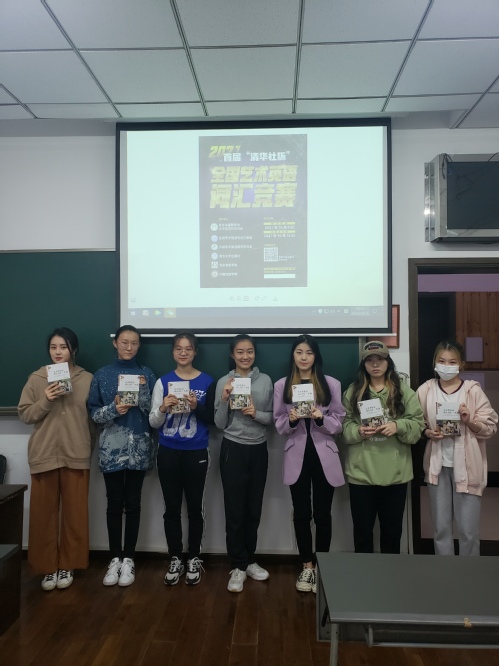 经过激烈角逐,我校共有8位同学进入决赛,他们是电影学院的张欣琰,蔡宇彤,胡冰冰和许佳依;戏文系的庞睿祎,黎珈宁和雷雅涵以及舞美系的王明萱,恭喜这八位同学在初赛中脱颖而出,成功晋级,获得校级初赛特等奖,获奖学生喜获有人文社科部外语教研室奖励的近日由清华大学出版社出版发行的《艺术类英语核心词汇一本通》一书。