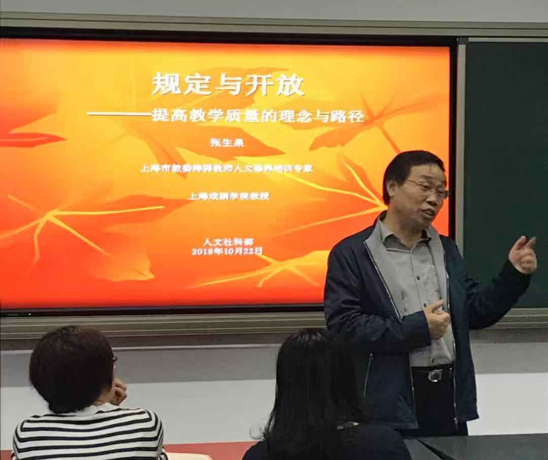 为了加强本科教育教学工作,根据教务处要求举办“提升在校教师的教学能力的讲座”的倡议,我人文社科部率先响应,于10月22日特邀上海戏剧学院教授、原上戏宣传部部长张生泉老师为部门青年教师开设专题讲座。