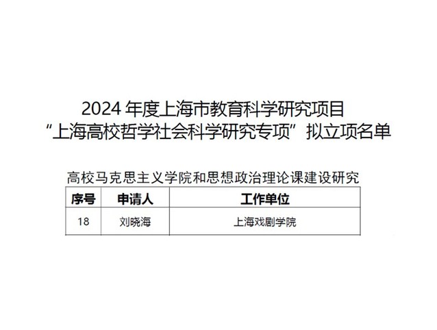 近日,2024年度上海市教育科学研究项目“上海高校哲学社会科学研究专项”拟立项名单公布,马克思主义学院刘晓海副教授喜获“高校马克思主义学院和思想政治理论课建设硏究”立项。