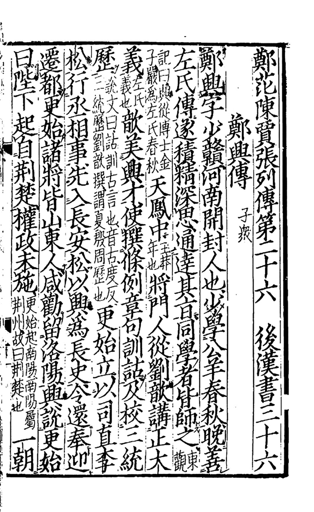 南宋刻本《后汉书·郑范陈贾张列传》书影,其中“贾”指的是贾逵。 资料图片