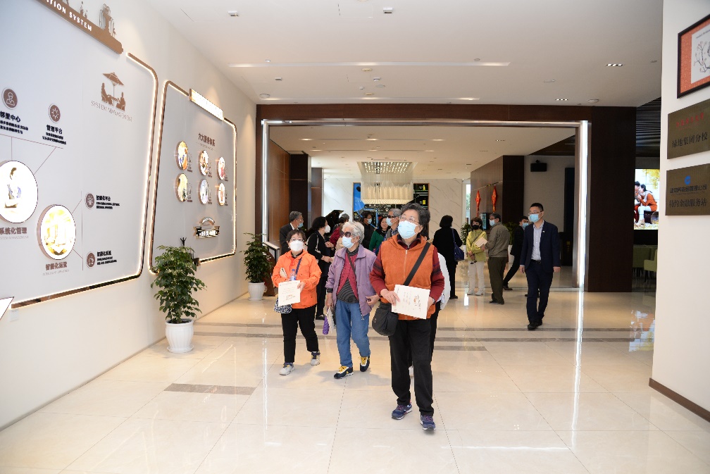 老同志们来到青浦绿地国际康养城•颐尚居,在工作人员的带领下,对入住公寓房的各项基础服务设施、多媒体教室等多功能配套服务场所等进行了实地考察。通过工作人员的介绍,老同志们对绿地康养城的整体规划、布局及未来发展等整体情况有了全面了解,初步体验了医、康、养、旅、产、融等一站式“五心”服务特色,也对“养生﹑休闲﹑颐养为主题的全新一站式医康养生”新型养老理念有了直观体验和感受。
