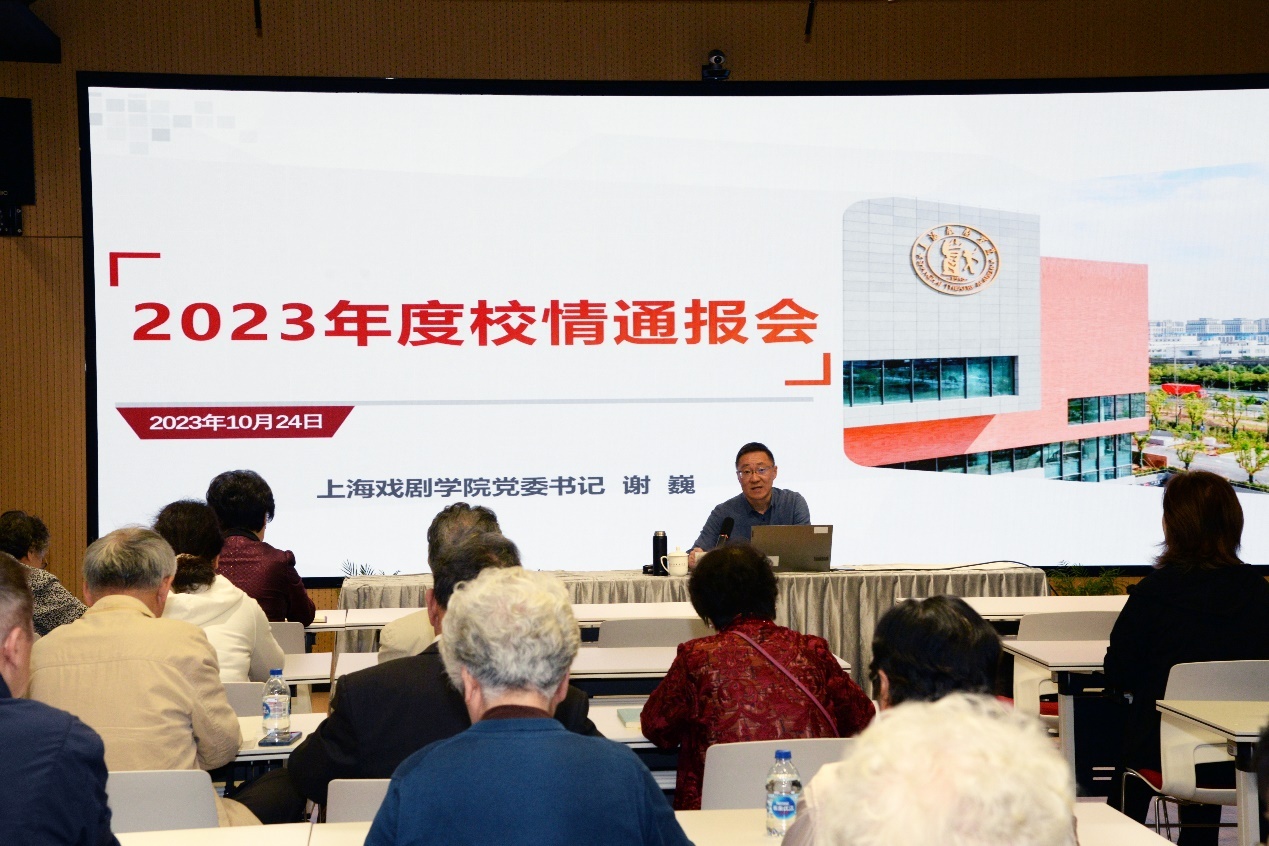 根据市委、市教卫工作党委的工作要求,10月24日上午,我校在华山路校区智慧教室召开专题会议,由学校党委书记谢巍同志向离退休老同志作校情通报。部分老领导、老教授、老党员、以及离退休党总支委员、各支部委员、校老教协理事、校党风廉政督导、校教学督导、校教指委成员、校教学剧目评审组成员、校关工委和二级院系关工分会成员近50人出席会议。本次校情通报会还开通了线上直播链接,分别发送在离退休老同志各微信工作群中,方便无法现场出席会议的离退休老同志在线收听、收看学习。