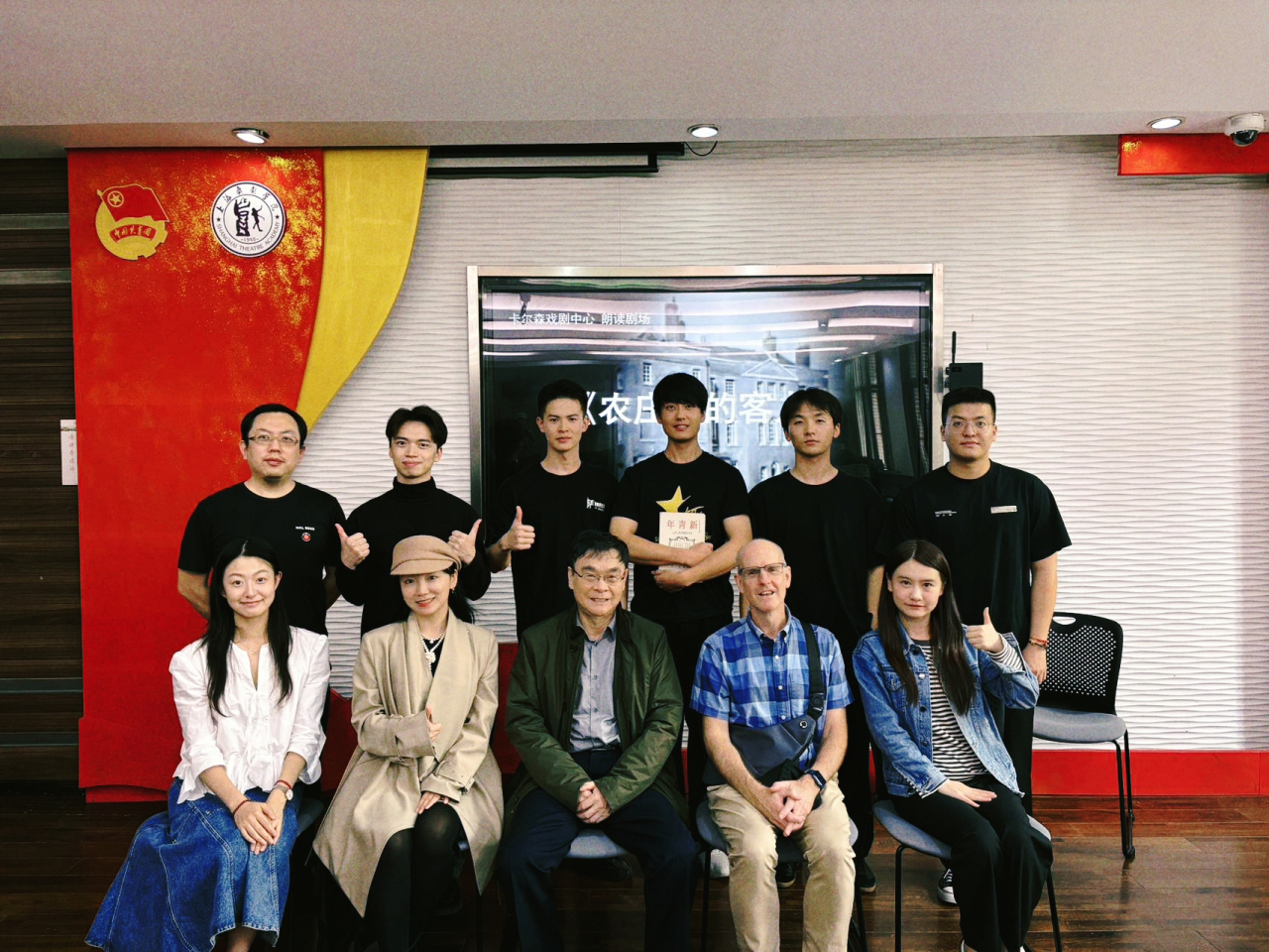 纽约市大博士生院戏剧系主任杰姆斯·威尔森(James Wilson)教授到访上海戏剧学院,在卡尔森戏剧中心为中外戏剧博士和研究生部学生们进行了五天课程讲座(2024 年10月7-12日)。他还观赏了卡尔森朗读剧场中外戏剧博士们的戏剧实践课《农庄馆的客人》中文版朗读并参观考察了昌林校区的电影学院。