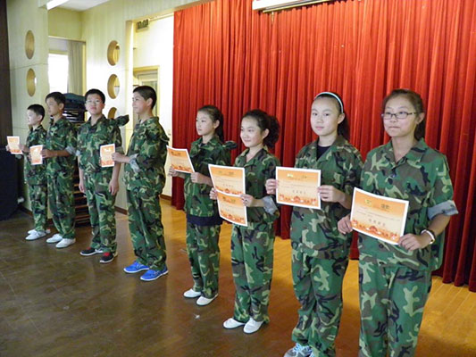 在结营仪式上,各个连队都光荣的获得了营地的嘉奖。高中部2012话影班获“作风优良奖”、2012美术评弹班获“团结协作奖”,8名同学获得了“训练标兵”荣誉称号,他们分别是朱梦婷、李乾豪、方朱万未、王嘉悦等同学。