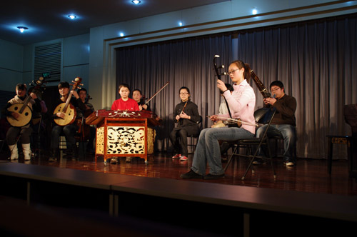 2011年12月15日晚6时整,戏校图书馆报告厅内上演了一场精彩的音乐班学生演奏会,演奏会在古筝三重奏《大长今》愉悦悠扬的琴声中拉开序幕。紧接着二胡、三弦重奏《十八板》、大提琴独奏《爱的致意》、《格鲁吉亚舞曲》、《音乐会波兰舞曲》、柳琴独奏《百万雄师过大江》、琵琶、古筝二重奏《春江花月夜》、竹笛二重奏《牧场欢歌》、古筝独奏《箜篌引》等一首首悠扬动听的乐曲将气氛逐渐推向高潮,最后音乐会在二胡与乐队协奏曲《葡萄熟了》中圆满结束。