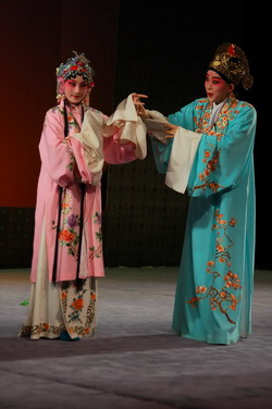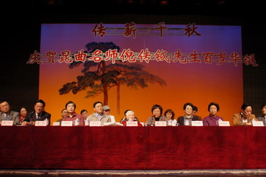 开幕式后,一台“五代同堂贺百岁”专场演出在清越的笛子协奏曲《牡丹亭》中上演,倪老师培养的五代昆曲传人都纷纷上台献演,用自己精湛的表演为倪老祝寿,我校02昆音班和04昆演班的学生也参加了演出,赢得了阵阵掌声。