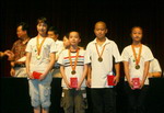 田恩荣副校长和贡献国副校长在开学典礼上宣布了上学期学校的各项获奖情况,并和孙秋红副书记一起向获奖学生颁发了奖状和证书。