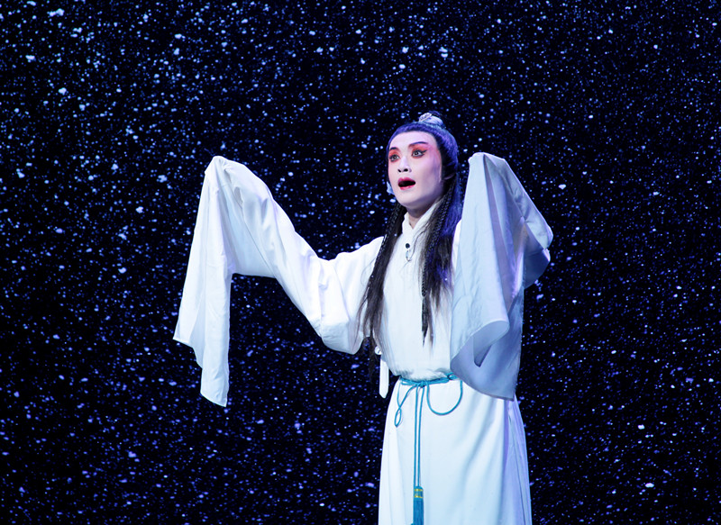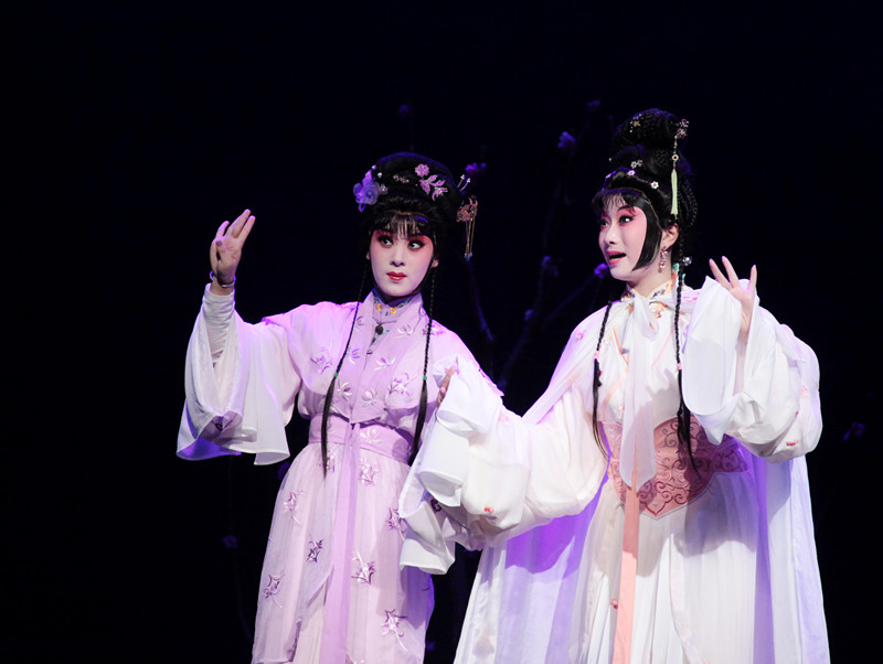 《宝黛红楼》词句非常典雅,剧情起伏跌宕,演员的婀娜身姿、一颦一笑都有不寻常的感染力,散发着独特的魅力。舞台很创新,布有传送带,这样道具的上场下场不仅不影响表演还具有艺术性,整个舞台效果很漂亮。演出结束后,观众除了对这些年轻演员表示认可之外,还对舞台布景赞不绝口。这些年轻演员是戏曲界的希望,传承着中国文化。(文、图:学生记者 顾秋梦