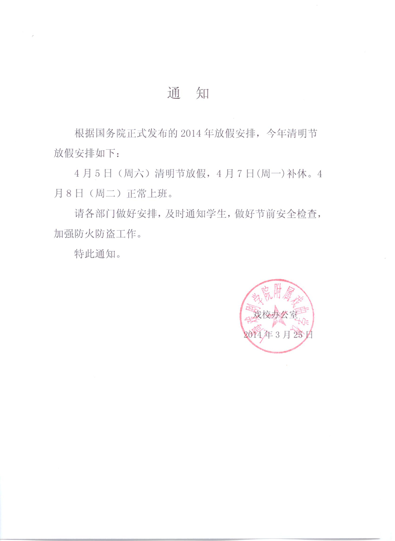 开云足球首页官网下载附属戏曲学校清明节放假通知