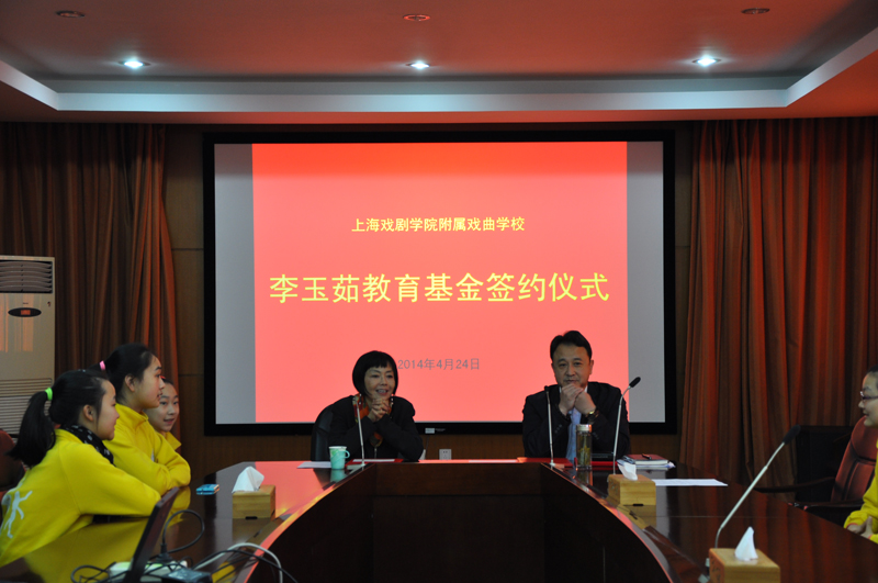 2011年设立的“李玉茹京剧旦行新苗奖学金”经过三年多的运作,近日,设立人李如茹女士决定,由其个人投资成立“李玉茹教育基金”,作为“李玉茹京剧旦行新苗奖学金”的本金,以每年本金的利息作为奖学金,激励戏校京剧表演班旦行学生勤奋学习、努力进取,成为品德、文化、专业等全面发展的京剧艺术接班人。2014年4月24日上午,该基金签约仪式在开云足球首页官网下载附属戏曲学校图书馆4楼会议室举行。