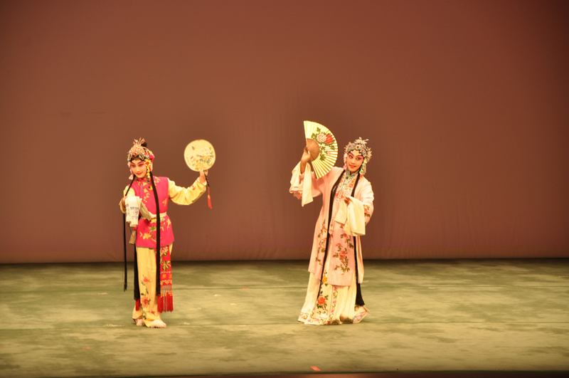 整场展演可谓座无虚席,观众基本都是澳门各中学的高三学生。演出由脍炙人口的京剧武打短剧《三岔口》开始,两位演员年龄虽小但基本功扎实,通过摸索、碰撞等逼真动作,演绎了在“伸手不见五指”的黑暗中打斗的场景,虽然整个表演没有一句念白,但演员精湛的武打招式和逼真的表演让观众们毫无障碍的理解了剧情,并给予了掌声。之后的《牡丹亭·游园》选段中扮演杜丽娘的炼雯晴,一曲“原来姹紫嫣红开遍”唱得宛转动听;扮演春香的张芃蓉表演也可谓生动活泼,两人通力合作,让台下观众充分领略了昆曲特有的典雅、规范的表演风格,使得初次接触昆曲的学生深受感染。而《铡美案》包拯的扮演者谢明君所表演的“包龙图打坐在开封府”唱段,满宫满调,音色洪亮,字字铿锵,很好地体现了包拯嫉恶如仇的人物性格。此外,《游街》的“矮子功”、《挂画》的“椅子功”、“耍手绢”,均从不同角度展现了京剧艺术的风采,看得同学们眼花缭乱,不断发出惊叹声。
