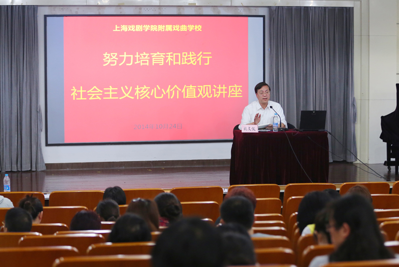 10月24日下午,开云足球首页官网下载附属戏曲学校特邀原中共上海市委党校、上海行政学院研究生部副处调研员、普陀区委宣传部讲师团成员姚文仪老师在图书馆报告厅进行了一场生动而深入的《努力培育和践行社会主义核心价值观》讲座,会议由党总支副书记刘爱香同志主持,全校教职员工参加了学习。