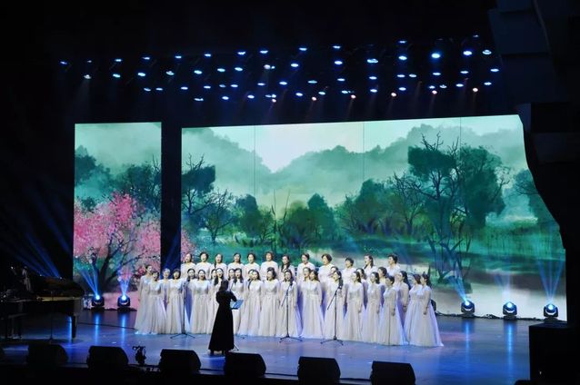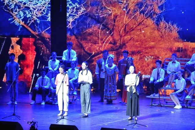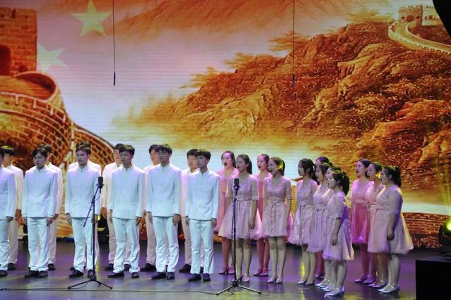 我校师生参与了此次展演的三个节目,分别是合唱《我爱你中国》,情景诗朗诵《明亮的心》,以及合唱《清流》《祖国,慈祥的母亲》。
