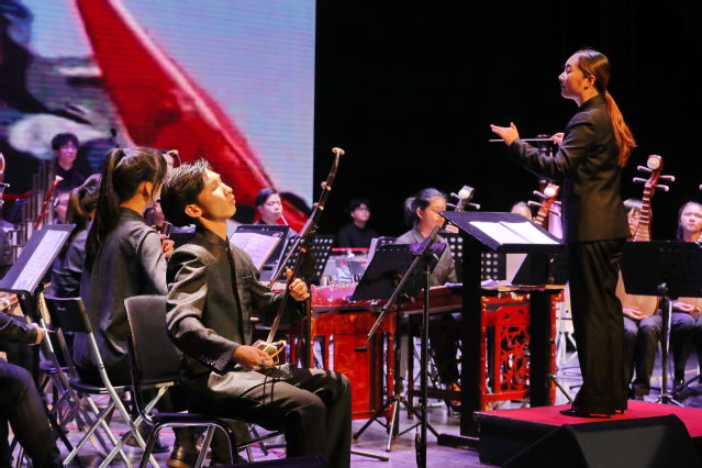 七十年春华秋实,为了能在这个特别的时刻用美妙的音符向祖国母亲献礼,从入校才刚满一个多月的19级新生到明年即将离校的14级毕业班,我校戏曲音乐表演专业的120多名学生与全组教师在学校领导的大力支持与各部门的通力协作下,利用繁忙的教学之余,全员集结齐心协力。从选题策划到暑期集训,从分曲排练到最终成型,在近半年的时间里克服诸多困难,长期辛勤奋战,终于在新中国成立70周年之际,为大家呈现了一台热情洋溢、风格多样且优美动听的音乐会。