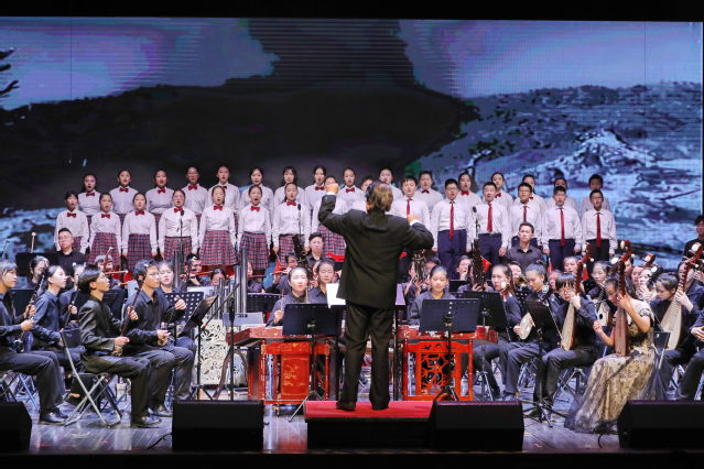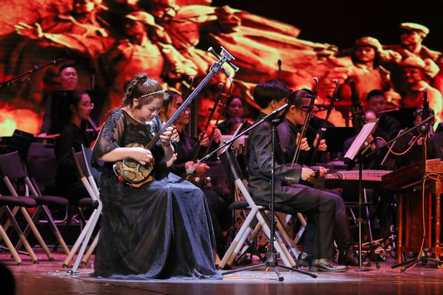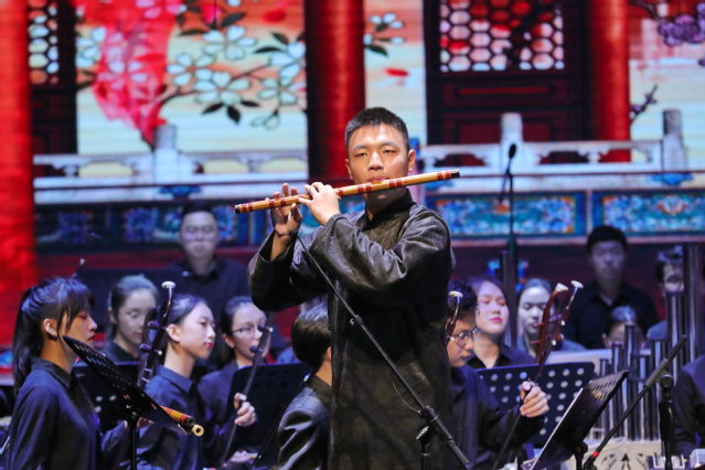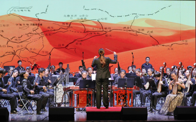 应和“一带一路”倡议构想的民族管弦乐《丝绸之路》怀古溯今,其浓郁的西域音乐特征与现代演奏技法交相辉映,听来催人奋进凝心聚力,掀起了整台晚会的高潮。