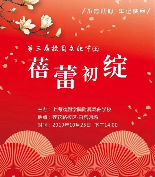 2019年10月25日,戏校第三届校园文化节之“蓓蕾初绽”在白宫剧场隆重上演。整场演出如同一场盛大的家宴,由戏校师生精心准备的14道节目组成,舞台上上演的是平日里一块儿排练的节目,台下坐着的是朝夕相处的伙伴,孩子们放开了拘束,尽情享受这场集体的狂欢。