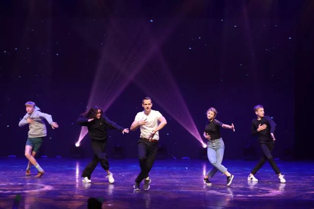 帅气的Daniel老师领着丹麦同学上场了,为观众们带来活力四射的舞蹈。舞台上时不时闪现出机械的声响,好像为舞者装上了不知疲倦的增压引擎,让舞姿看起来酷感十足,台下观众的心跳和脉搏也加足了油门,跟着台上的舞者一起狂奔。