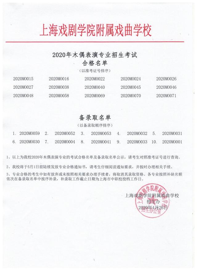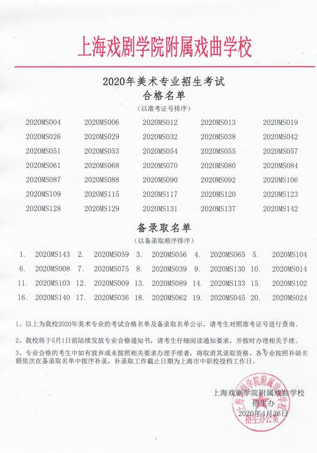 2020年开云足球首页官网下载附属戏曲学校招生考试合格名单公示