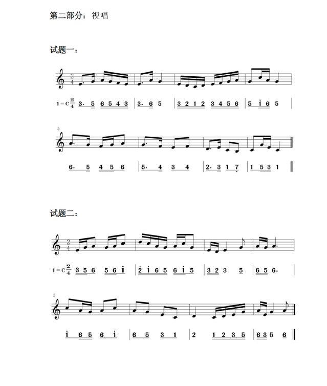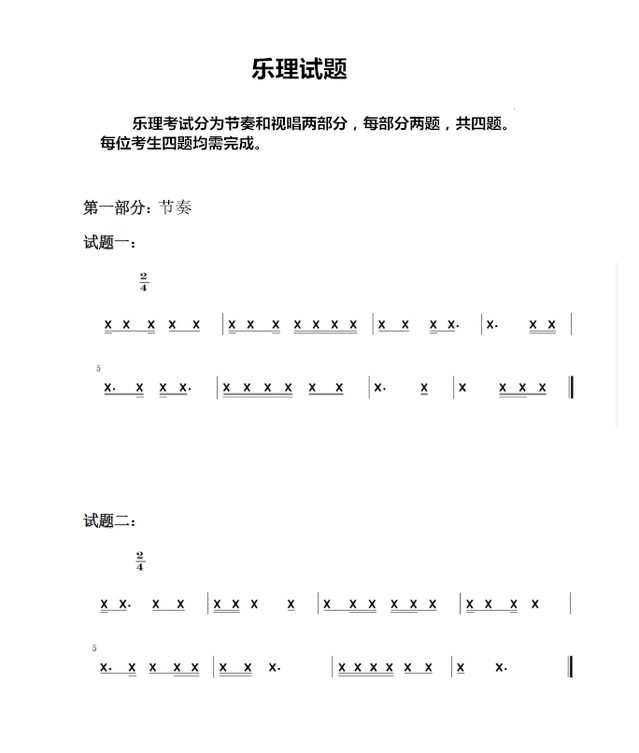 考生根据题目要求进行拍打节奏(以拍手形式)、视唱(可以有乐器给标准音,视唱过程不得有任何乐器伴奏)。速度要求:【中速】(时长2分钟内,以完整一遍为准)。