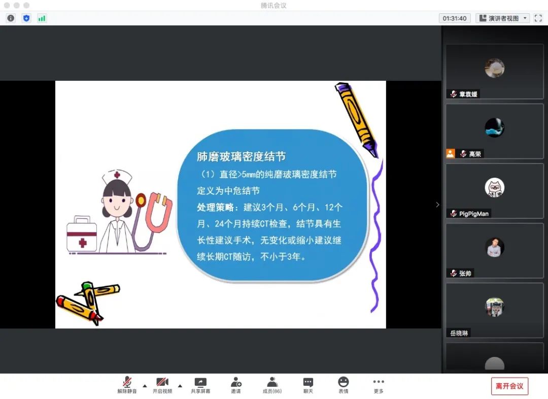 何为健康?陆主任首先说明健康的概念是随着社会的进步和医疗科技的发展其内涵在不断地变化,同时指出决定健康的四个因素:遗传因素、环境因素、医疗条件和个人生活方式。继而引出通过健康体检,可以早期发现潜在隐患的话题。例如:血液、尿液的常规化验,脂肪肝的诊断、演变与防治,体制指数,血脂化验,高血脂应该如何诊治,常见疾病的诊断标准、临床症状、治疗,常见肿瘤标志物的临床意义,肺结节与肺癌、吸烟的危害、PM2.5与雾霾、新冠肺炎的防控)等内容,剥茧抽丝,依次展开。逐一纠正了长期留存于人们思想中的一些错误认识,既深入浅出,又通俗易懂。最后,陆主任指出健康的四大基石——合理饮食、适量运动、戒酒限烟、心理平衡,以及膳食宝塔图。