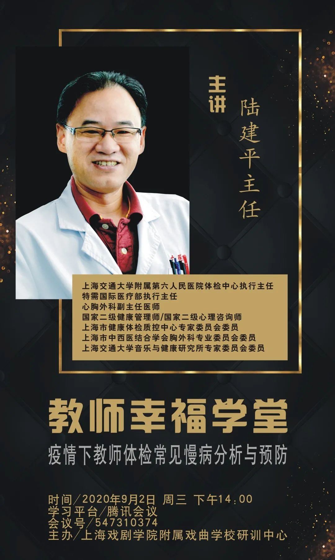 随着疫情防控形势不断持续向好,人们在反思个人行为的同时,对于个人健康也有了更高的要求。时值我校工会组织教职员工进行一年一度的体检,为帮助教师们更好地正确认知健康,我校教师研训中心于9月2日下午二时,特邀上海交通大学附属第六人民医院体检中心执行主任、特需国际医疗部执行主任、心胸外科副主任医师陆建平老师,进行题为《疫情下教师体检常见慢病分析与预防》的讲座,作为教师的健康自我管理的校本培训学习。