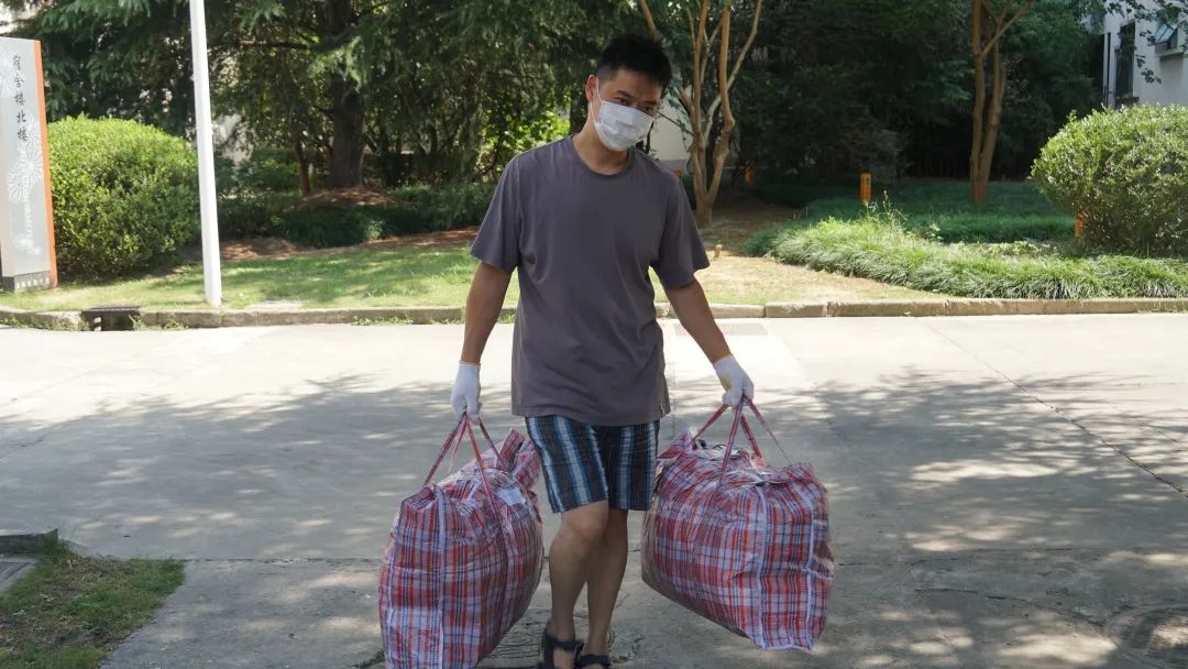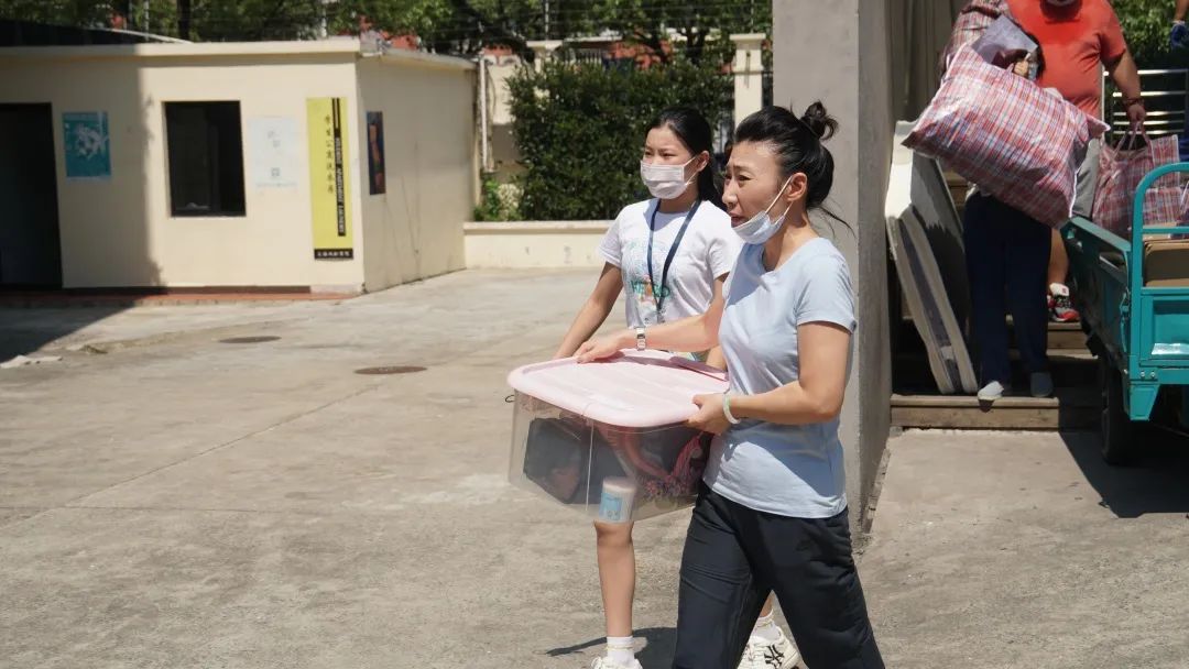 接下来的工作朴素且充实,由于天气炎热,汗水湿透了老师们的衣衫,但没有人叫苦叫累。封箱带、蛇皮袋、三轮车,劳动、汗水,负重、登高,这些熟悉的点滴,让年轻教师回想起了学生时代,让年长教师想起自己成长中的同龄孩子。此时此刻,老师们的心底与同学们的时空在无形中交叠,彼心同于此心,大手牵起了小手。