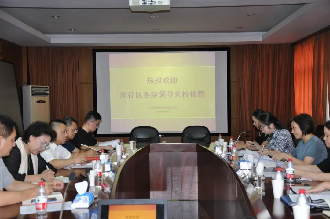 2020年9月3日,新学年开学第一天下午,闵行区区政府分管领导刘艳带领区府办凌珮雯,区发改委副主任王仁涛,区教育局副局长乔慧芳,梅陇镇副镇长何红梅,区府办综合科陈婧一行莅临我校视察指导工作。