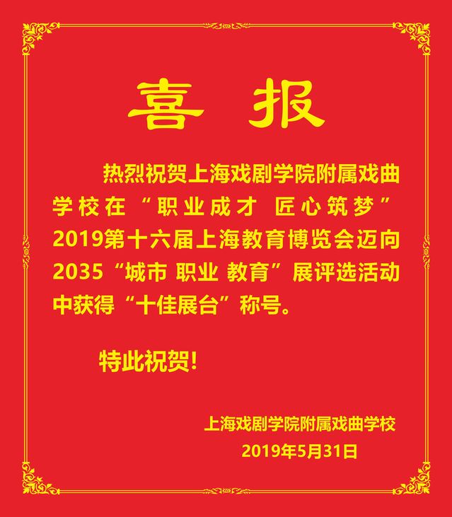 我校获得2019第十六届上海教博会迈向2035“城市 职业 教育”展评选活动中获得“十佳展台”称号
